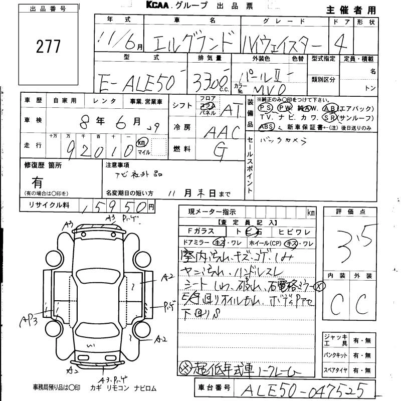 NISSAN ELGRAND 1999 г., лот № 277