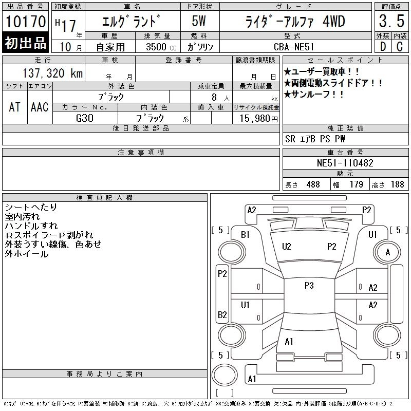 NISSAN ELGRAND 2005 г., лот № 10170