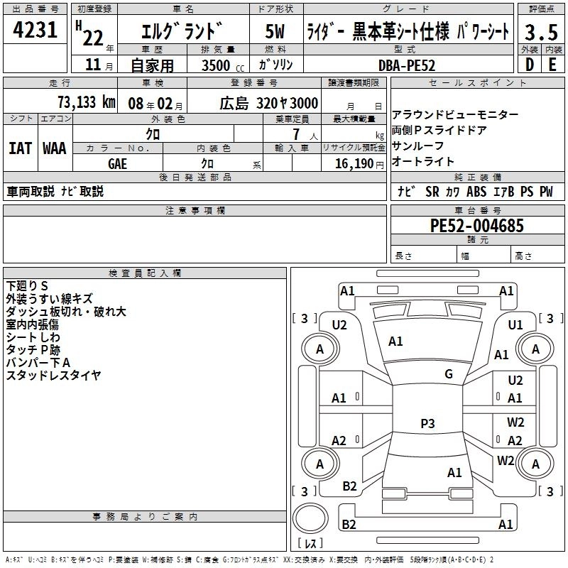 NISSAN ELGRAND 2010 г., лот № 4231