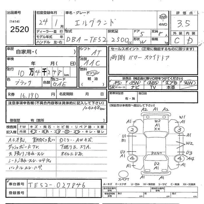 NISSAN ELGRAND 2012 г., лот № 2520