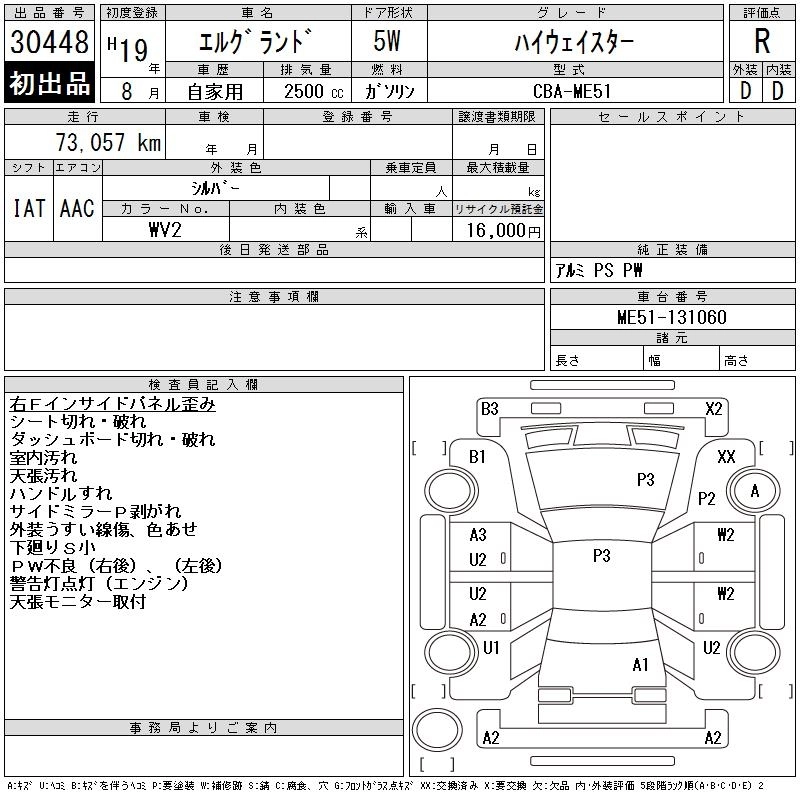 NISSAN ELGRAND 2007 г., лот № 30448