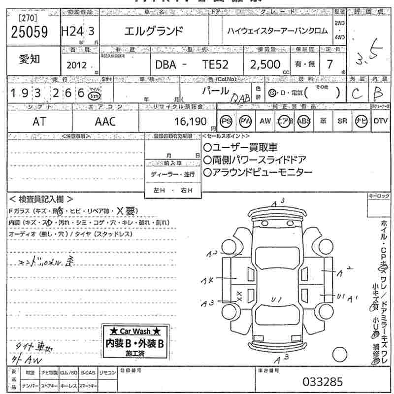 NISSAN ELGRAND 2012 г., лот № 25059