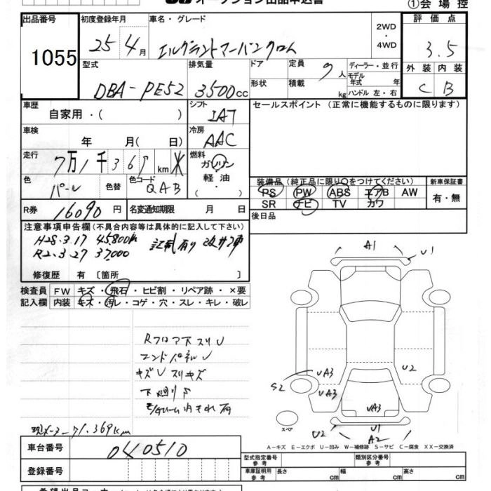 NISSAN ELGRAND 2013 г., лот № 1055