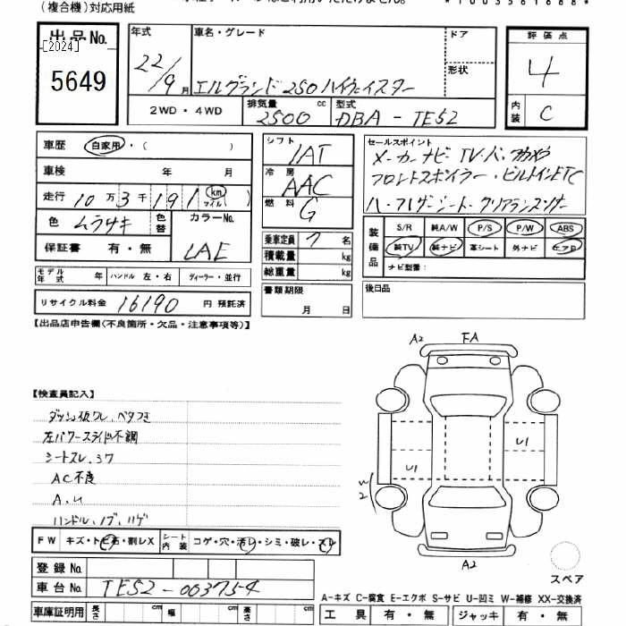 NISSAN ELGRAND 2010 г., лот № 5649