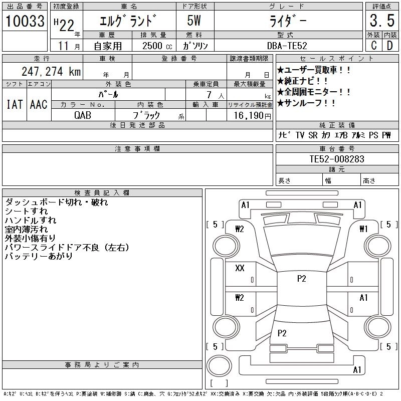 NISSAN ELGRAND 2010 г., лот № 10033