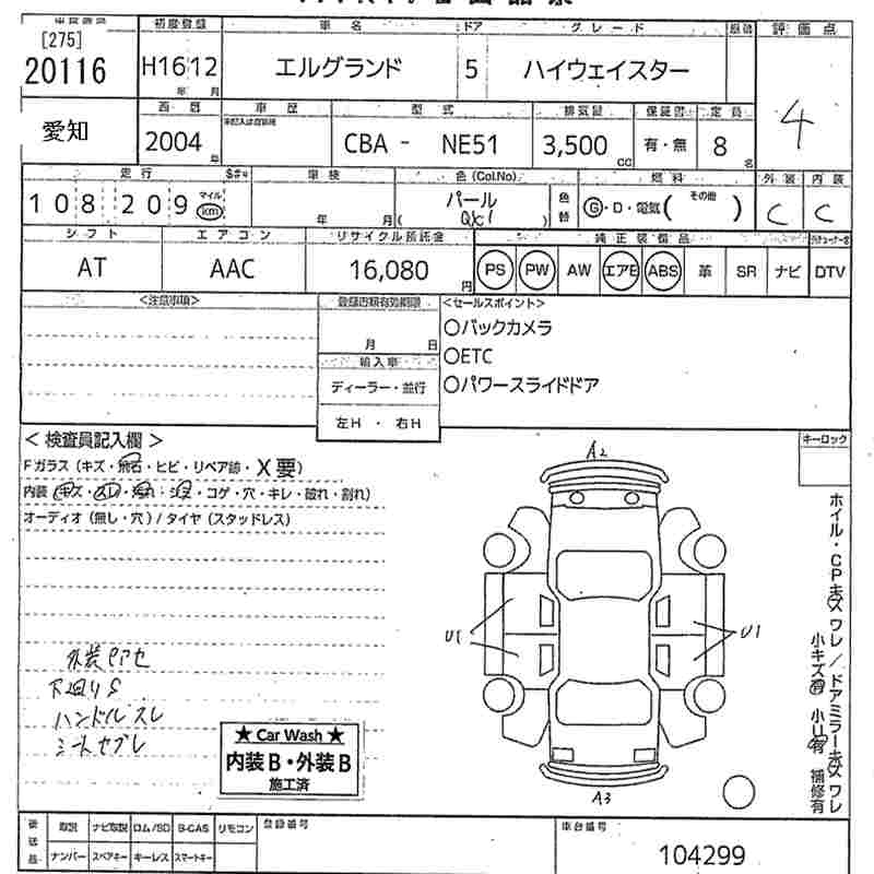 NISSAN ELGRAND 2004 г., лот № 20116