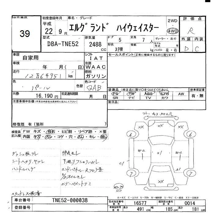 NISSAN ELGRAND 2010 г., лот № 39