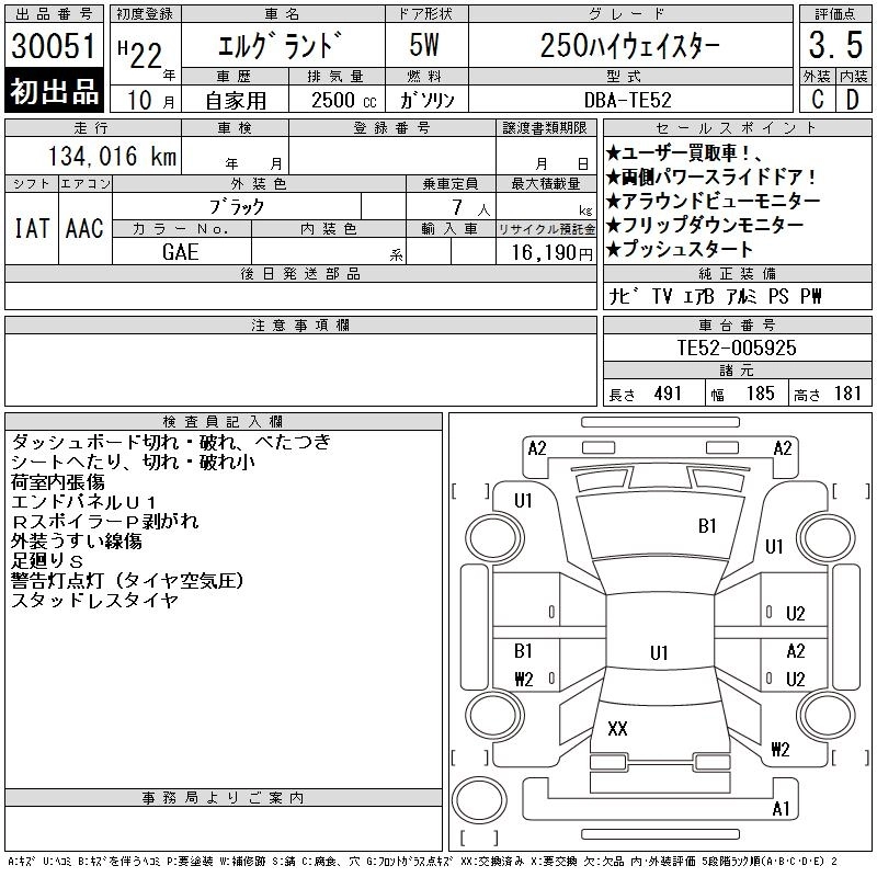 NISSAN ELGRAND 2010 г., лот № 30051