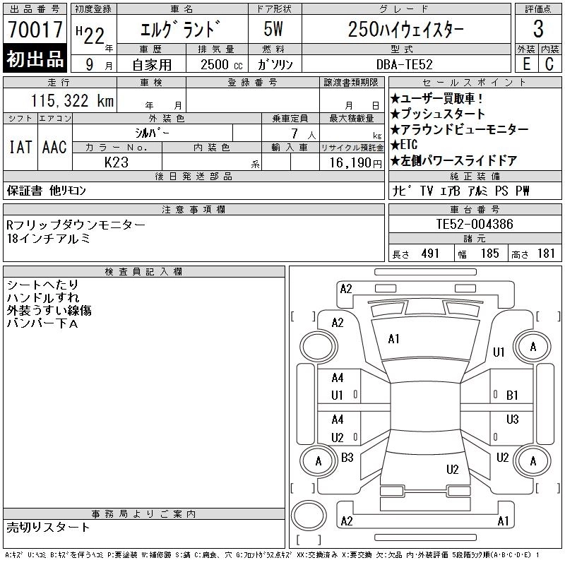 NISSAN ELGRAND 2010 г., лот № 70017