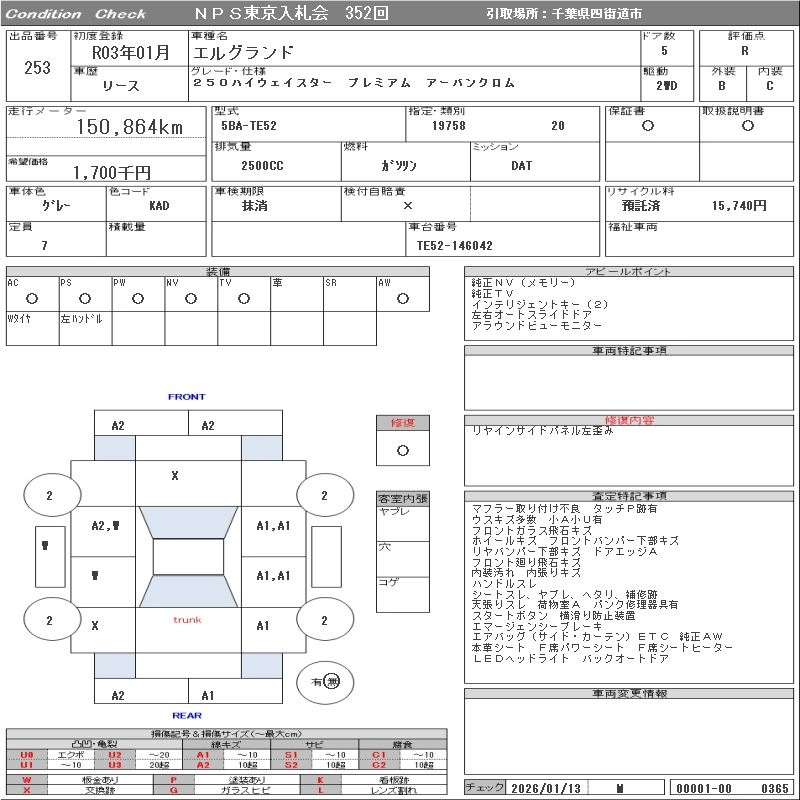 NISSAN ELGRAND 2021 г., лот № 253