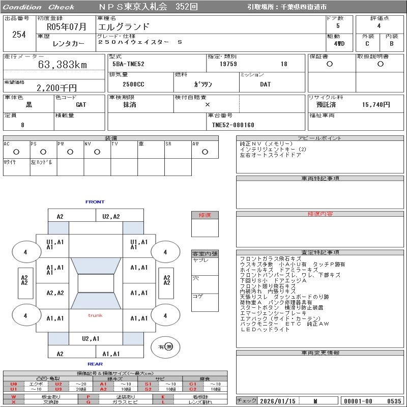 NISSAN ELGRAND 2023 г., лот № 254