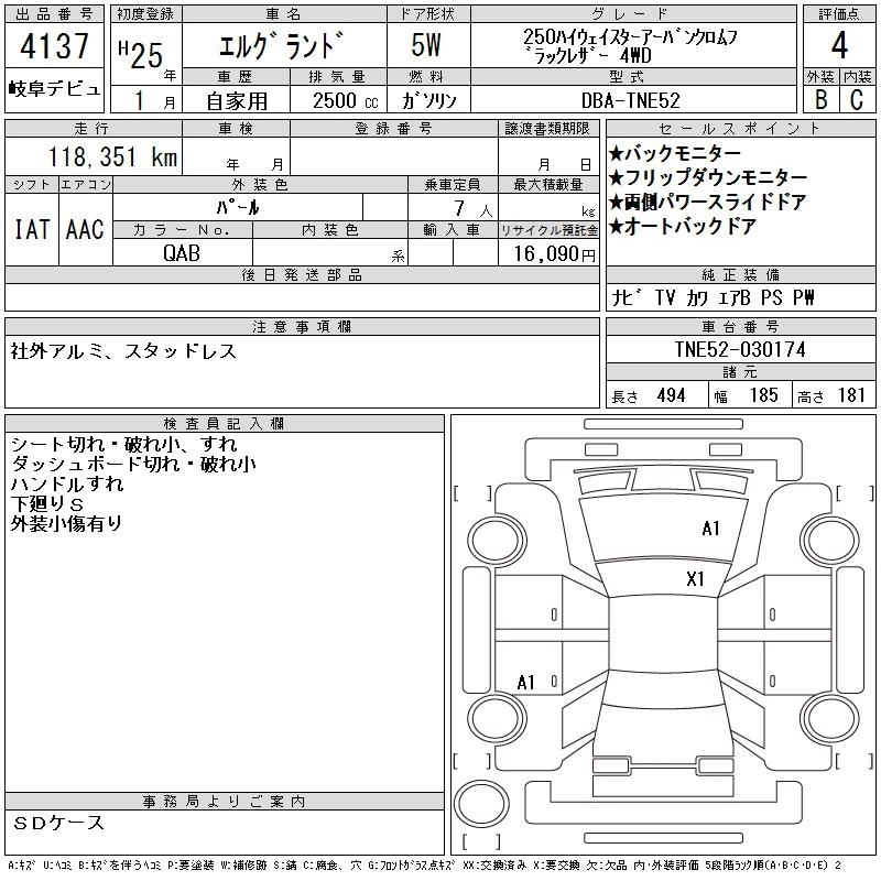 NISSAN ELGRAND 2013 г., лот № 4137