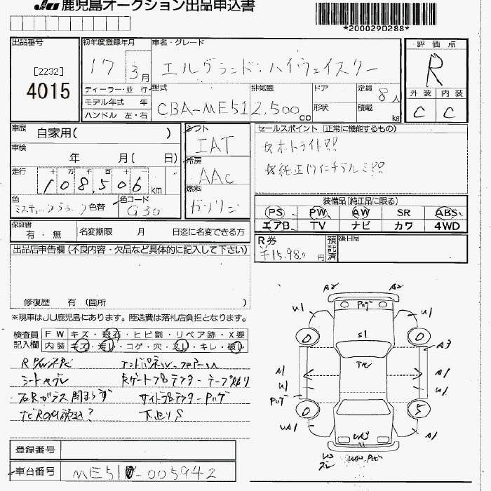 NISSAN ELGRAND 2005 г., лот № 4015