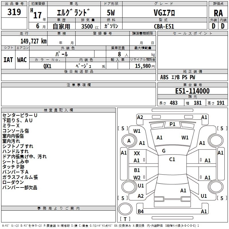 NISSAN ELGRAND 2005 г., лот № 319