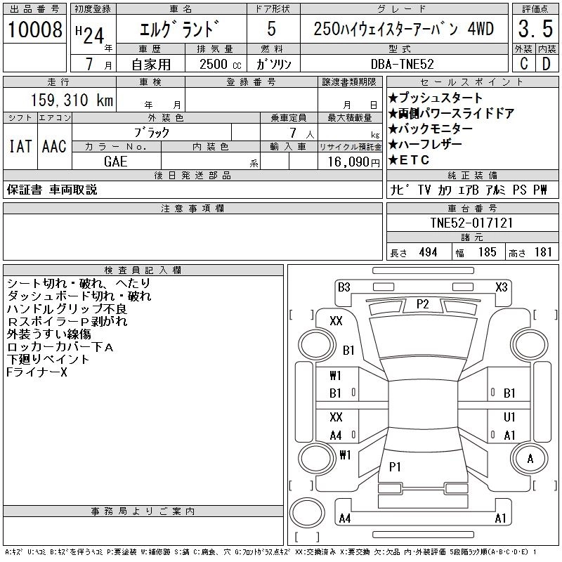 NISSAN ELGRAND 2012 г., лот № 10008