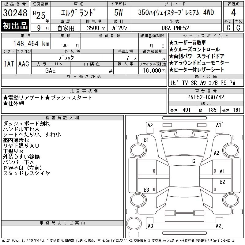 NISSAN ELGRAND 2013 г., лот № 30248
