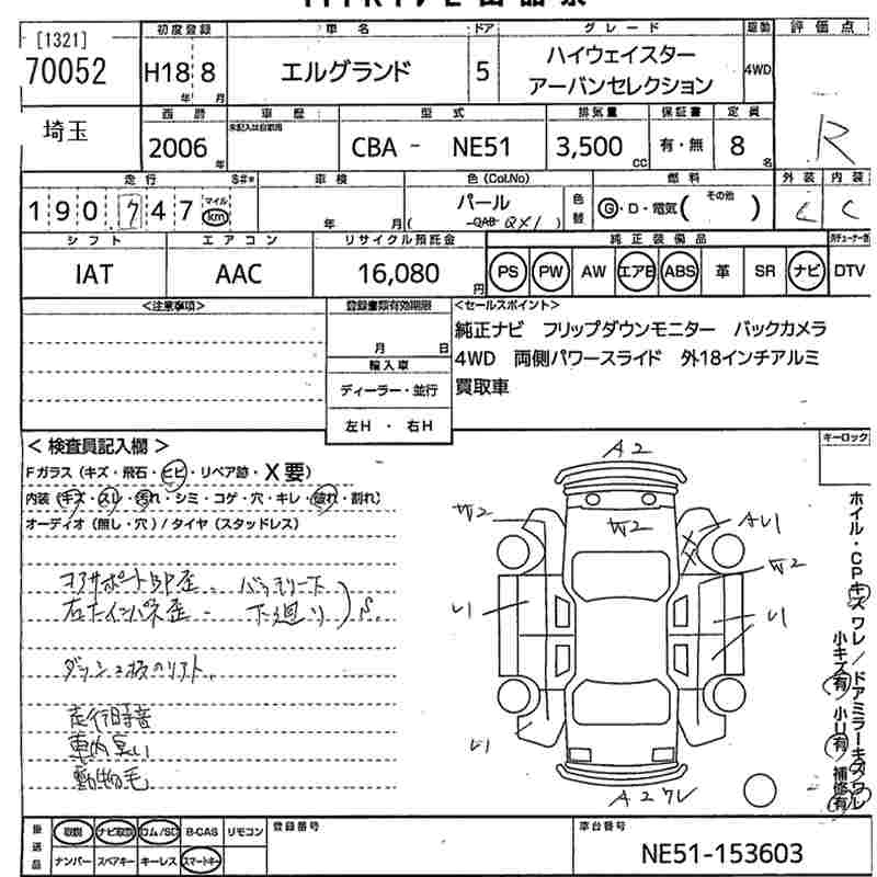 NISSAN ELGRAND 2006 г., лот № 70052