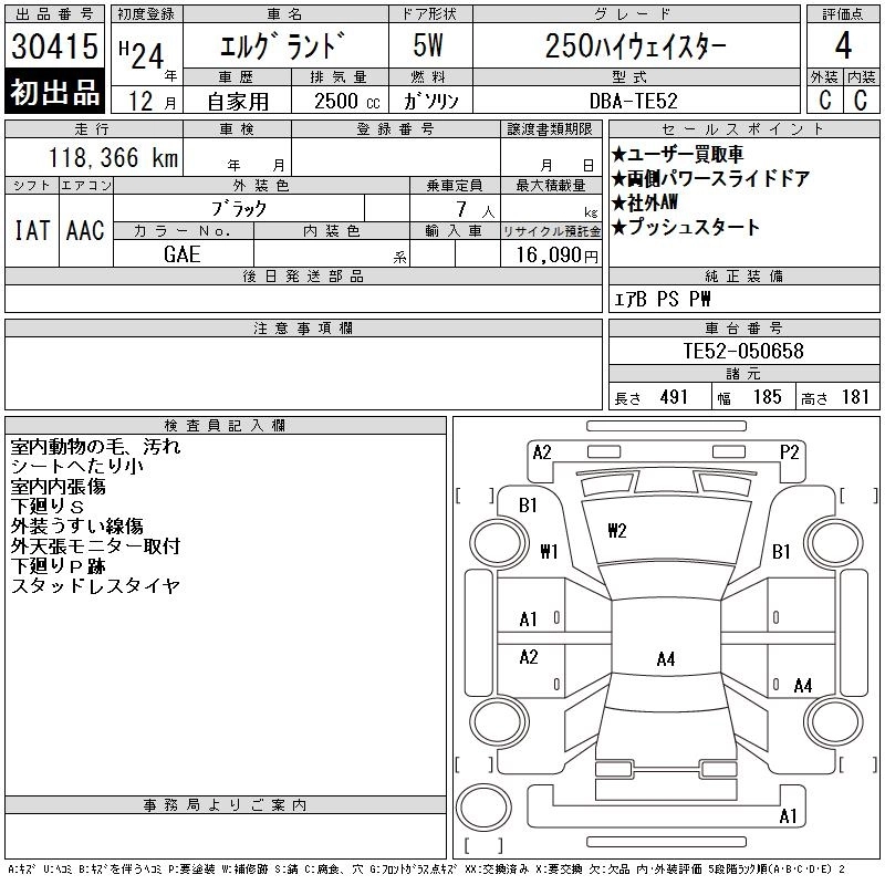 NISSAN ELGRAND 2012 г., лот № 30415