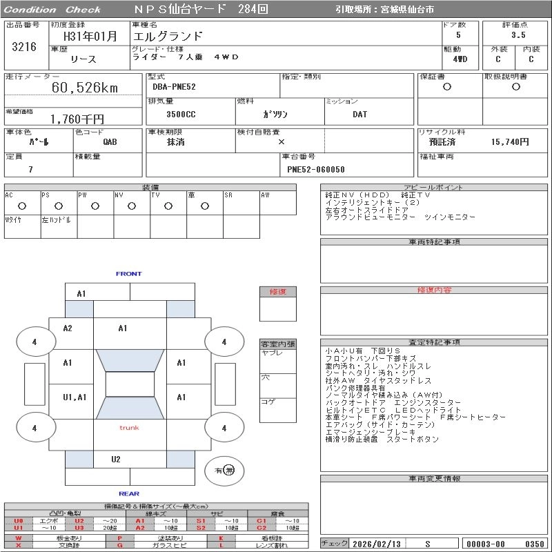 NISSAN ELGRAND 2019 г., лот № 3216