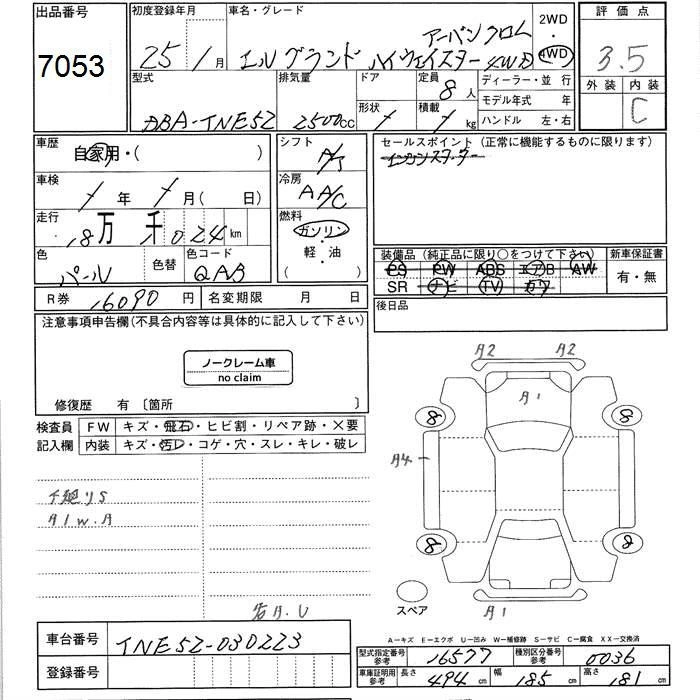 NISSAN ELGRAND 2013 г., лот № 7053