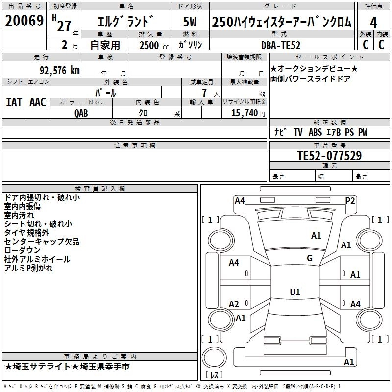NISSAN ELGRAND 2015 г., лот № 20069