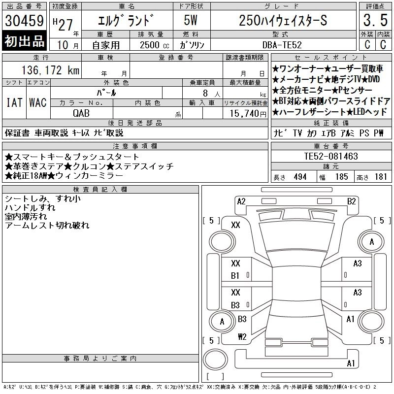 NISSAN ELGRAND 2015 г., лот № 30459