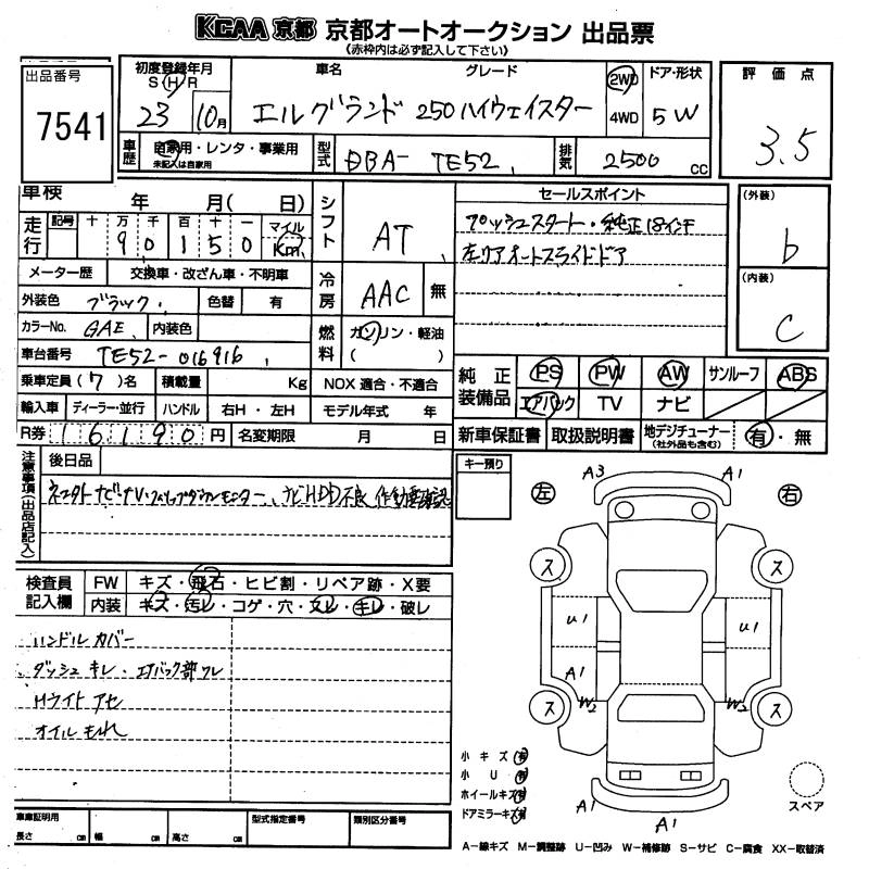 NISSAN ELGRAND 2011 г., лот № 7541