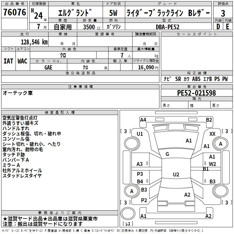 NISSAN ELGRAND 2012 г., лот № 76076