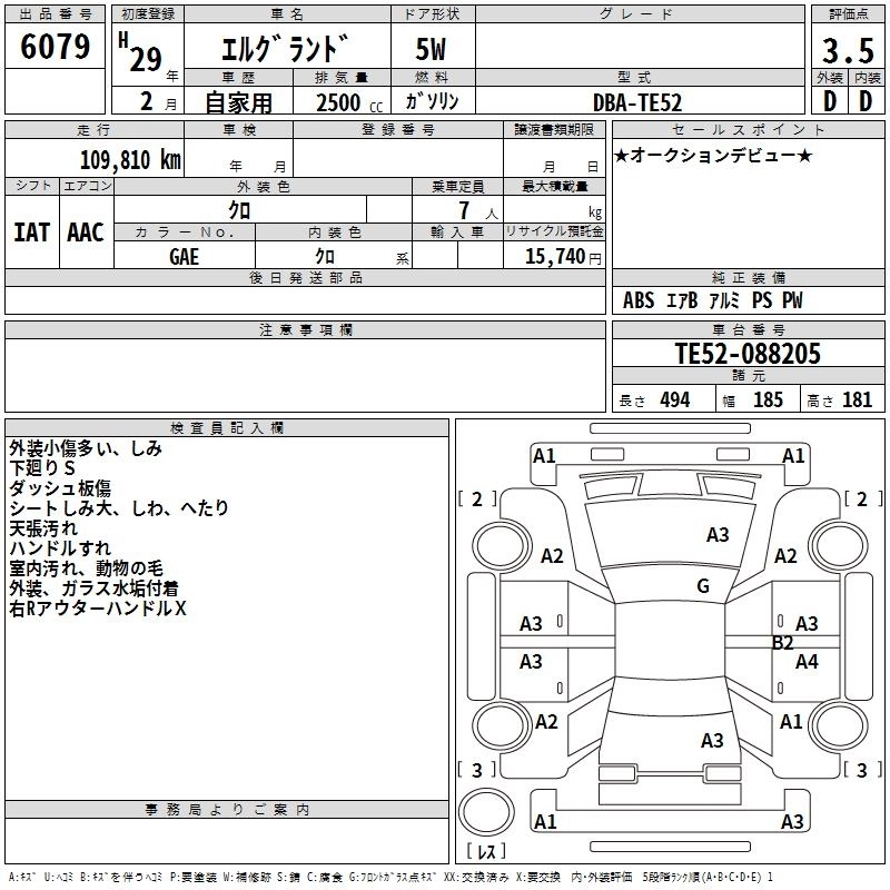 NISSAN ELGRAND 2017 г., лот № 6079
