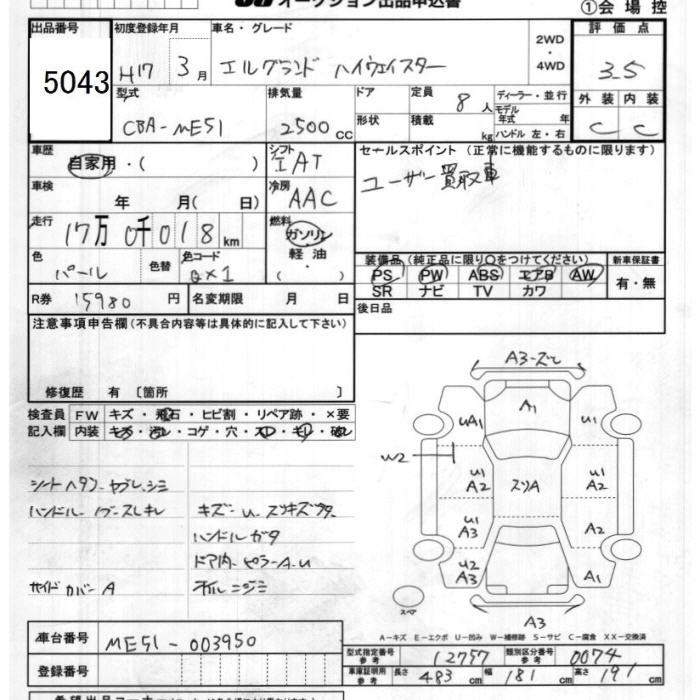 NISSAN ELGRAND 2005 г., лот № 5043