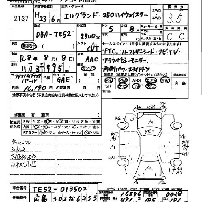 NISSAN ELGRAND 2011 г., лот № 2137