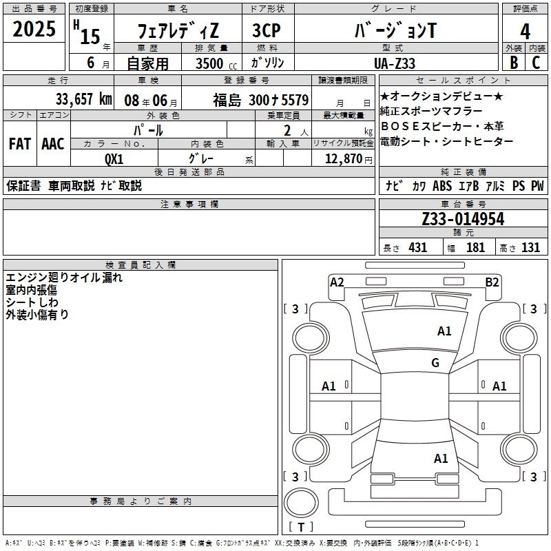 NISSAN FAIRLADY Z 2003 г., лот № 2025