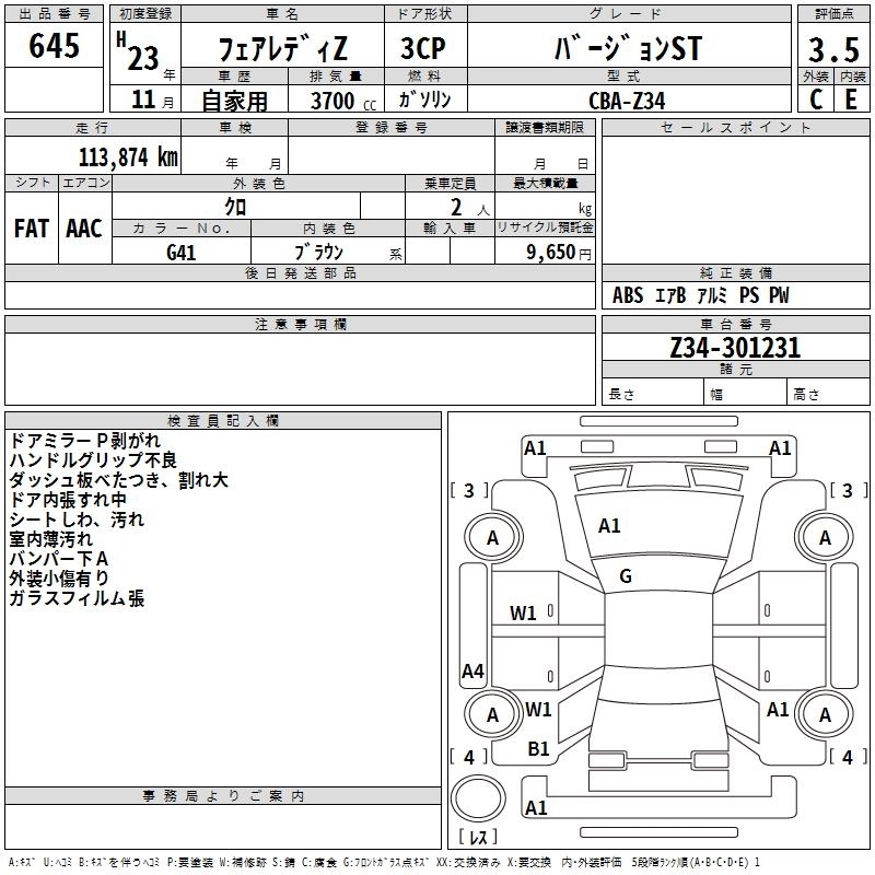 NISSAN FAIRLADY Z 2011 г., лот № 645