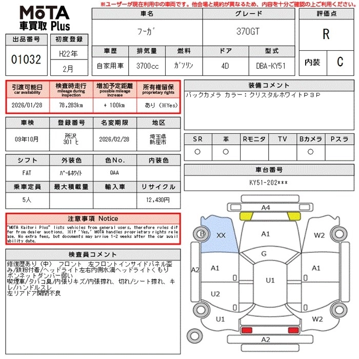 NISSAN FUGA 2010 г., лот № 1032