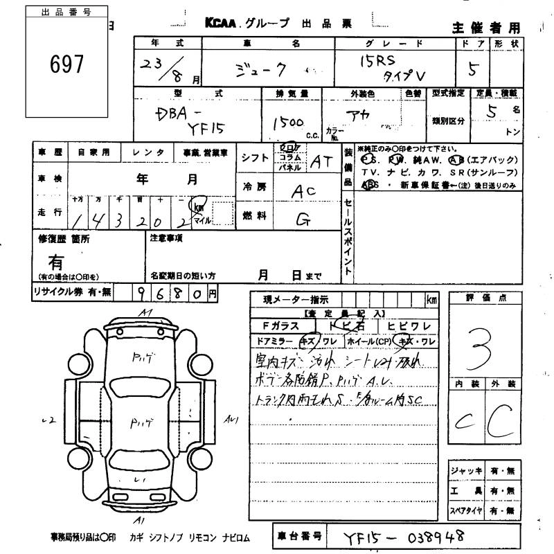 NISSAN JUKE 2011 г., лот № 697