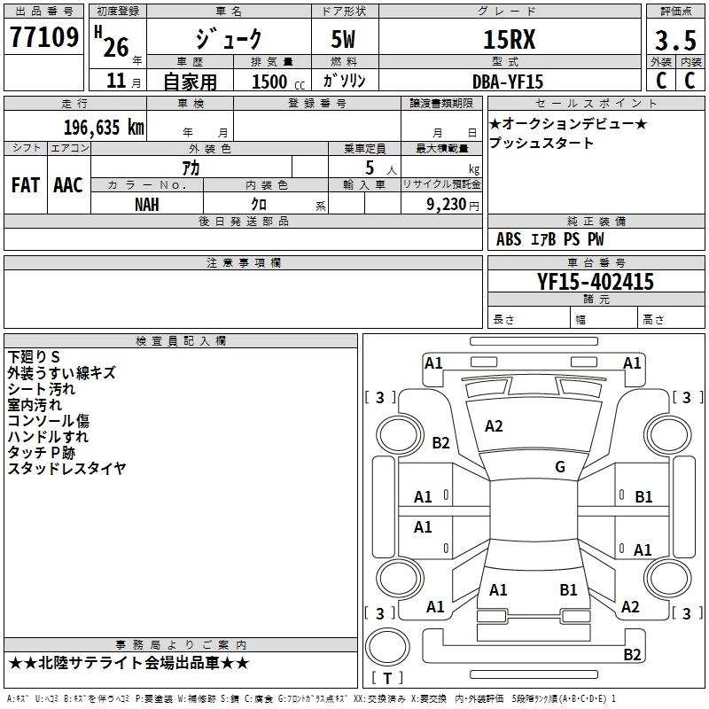 Год выпуска2014 Пробег 197 000 км КузовYF15 Комплектация15RX