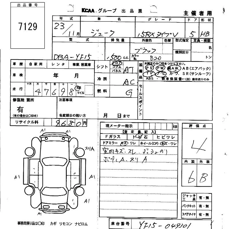 Год выпуска2011 Пробег 48 000 км КузовYF15 Комплектация15RX TYPE V