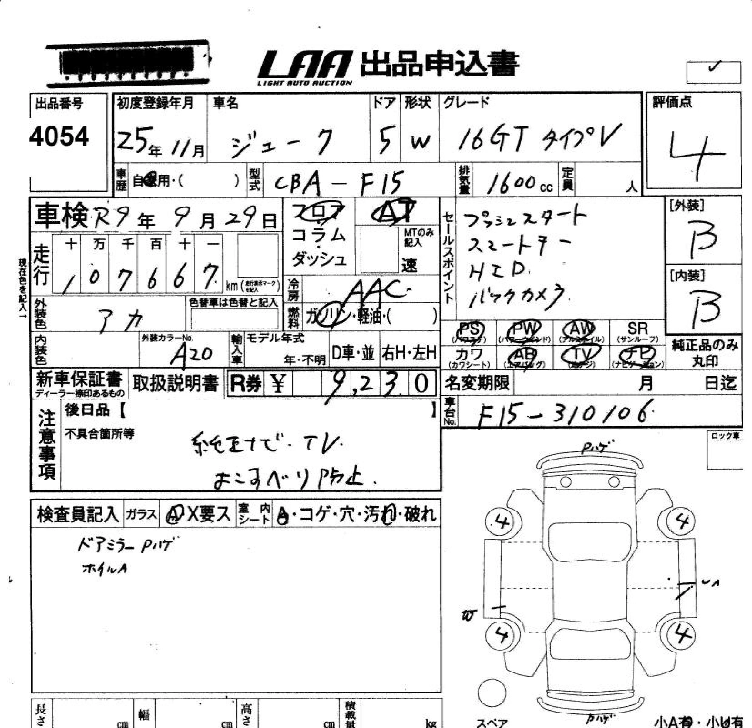 NISSAN JUKE 2013 г., лот № 4054