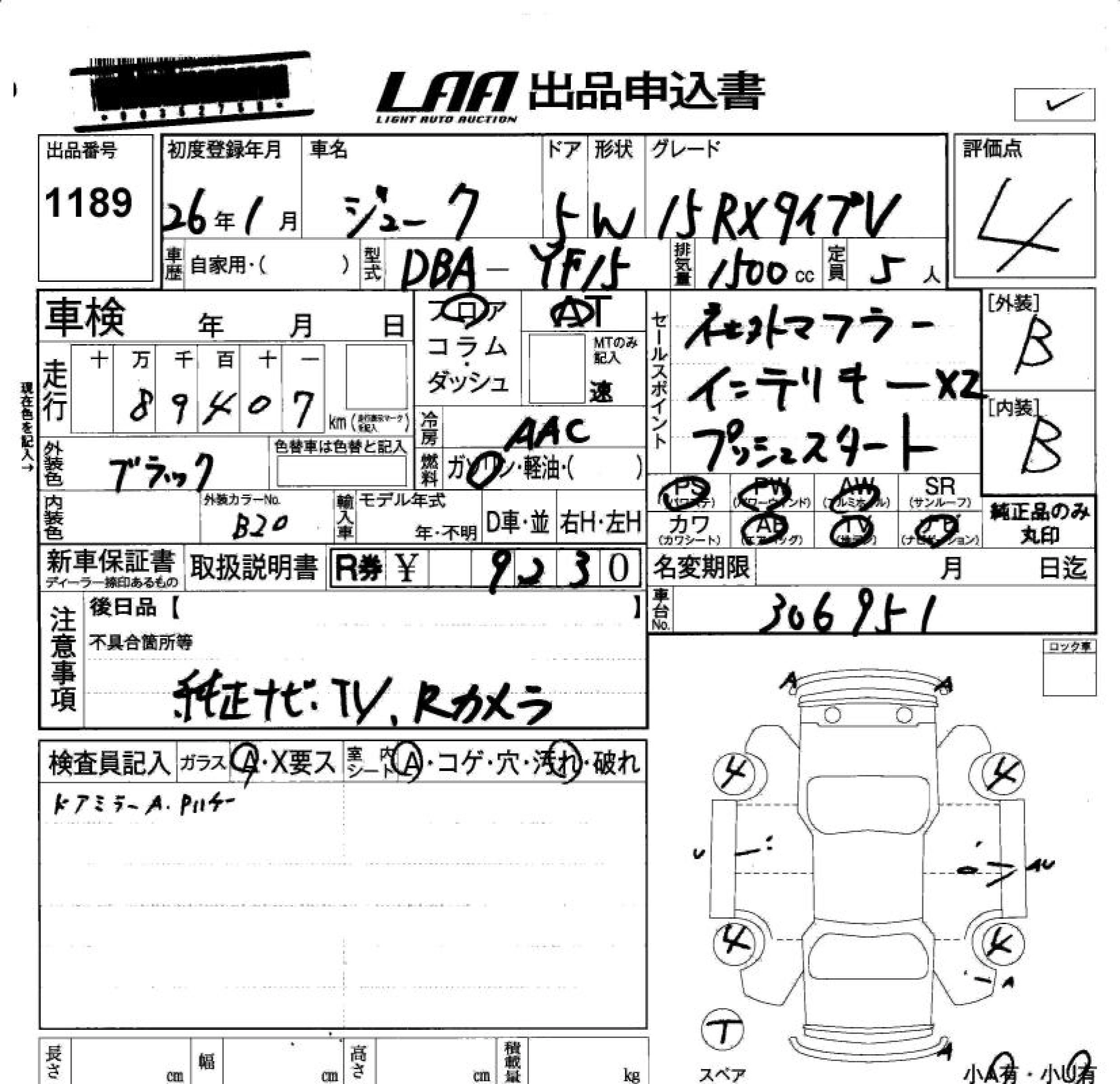 Статус продан Лот 1189 Аукцион LAA Okayama Дата аукциона 23.01.2026