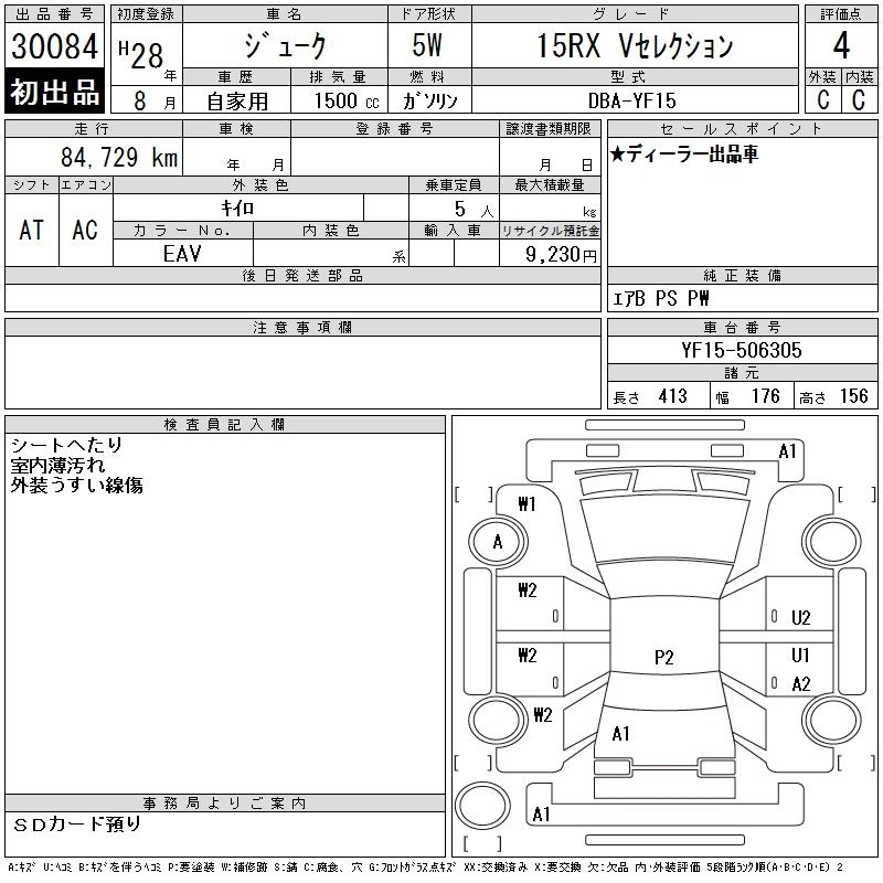NISSAN JUKE 2016 г., лот № 30084
