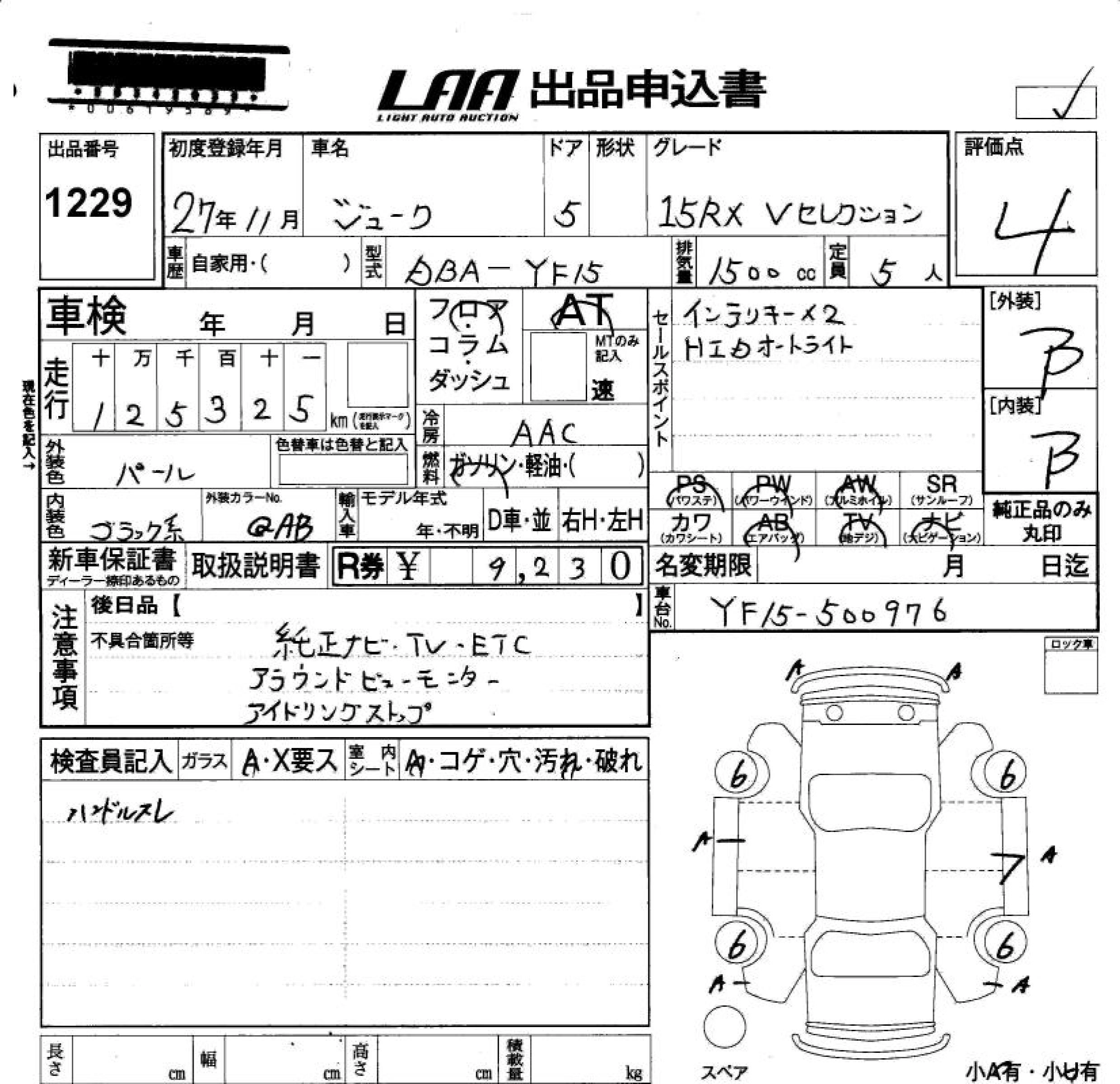 NISSAN JUKE 2015 г., лот № 1229