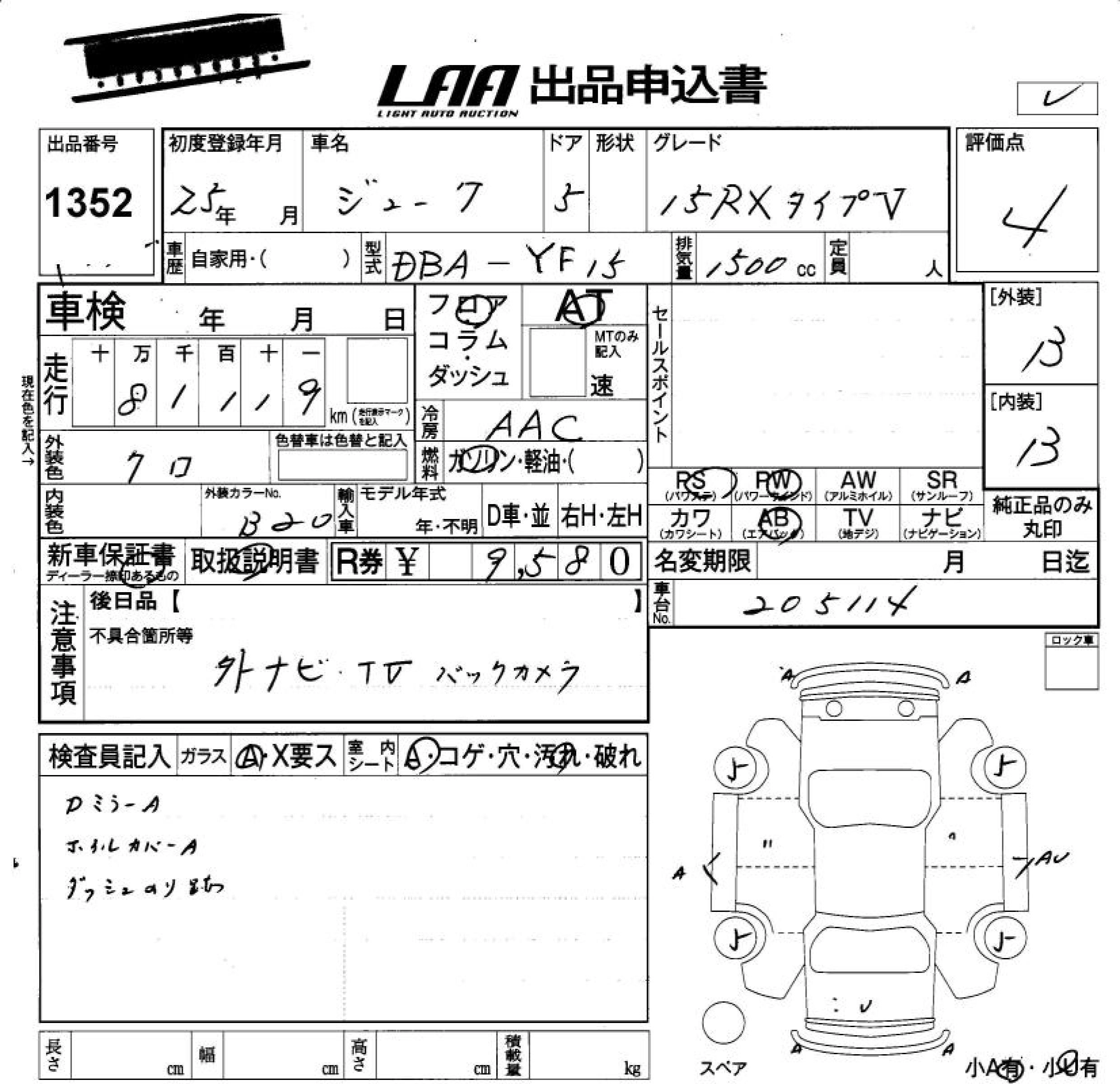 Год выпуска2013 Пробег 81 000 км КузовYF15 Комплектация15RX TYPE V