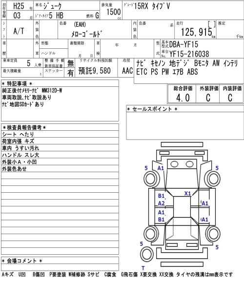 Год выпуска2013 Пробег 126 000 км КузовYF15 Комплектация15RX TYPE V