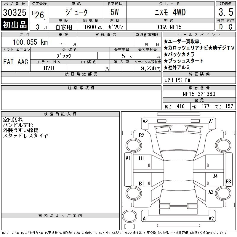 NISSAN JUKE 2014 г., лот № 30325