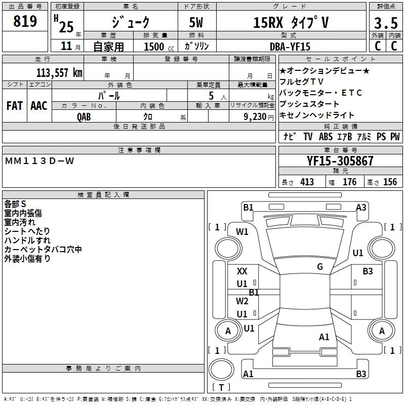 NISSAN JUKE 2013 г., лот № 819