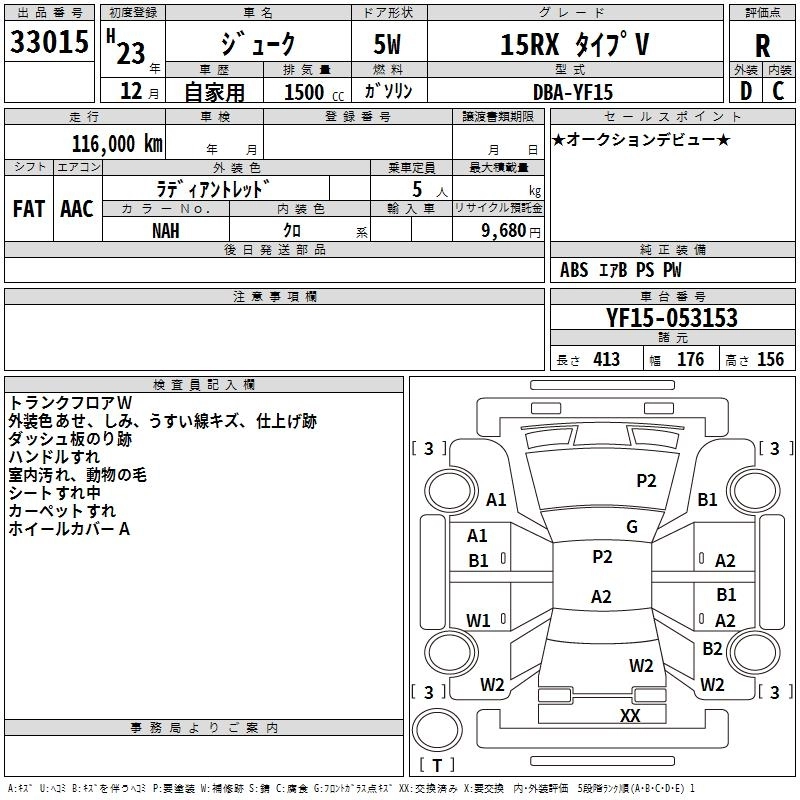 Год выпуска2011 Пробег 116 000 км КузовYF15 Комплектация15RX TYPE V