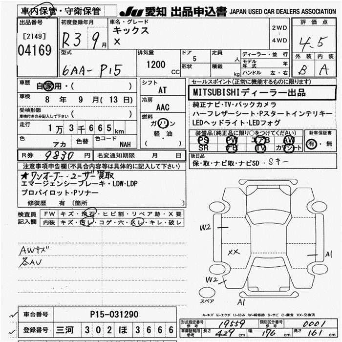 Статус выставлен на аукцион Лот 4169 Аукцион JU Aichi Дата аукциона 12.03.2026