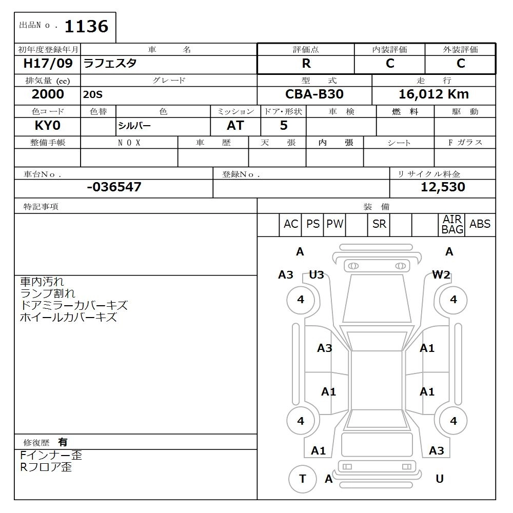 Статус продан Лот 1136 Аукцион Nissan Osaka Дата аукциона 20.10.2025