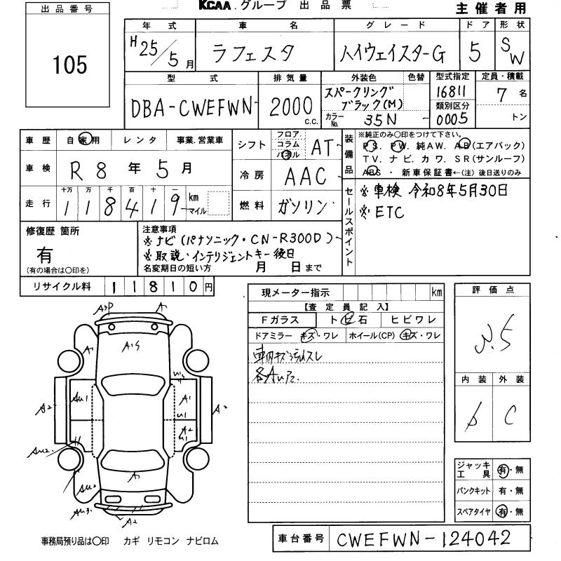 NISSAN LAFESTA 2013 г., лот № 105