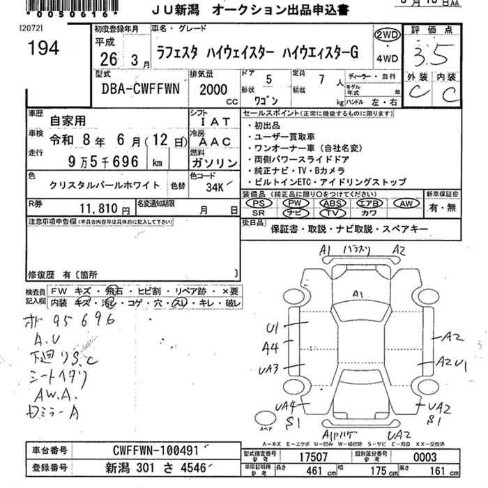 Статус выставлен на аукцион Лот 194 Аукцион JU Niigata Дата аукциона 13.03.2026